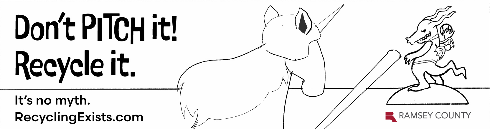 Most recently, I got to design and illustrate a billboard for the Saint Paul Saints, featuring Murphy, the mythical unicorn that promotes the very real recycling infrastructure of Minnesota.