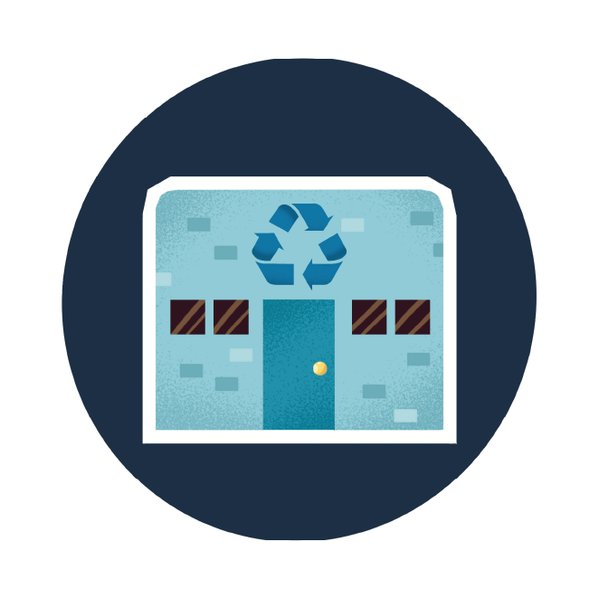 In addition to the map was a series of vinyl, reusable stickers I illustrated. These are used to demonstrate to the children touring the Recycling and Energy Center where important recycling infrastructure is located in the two counties.